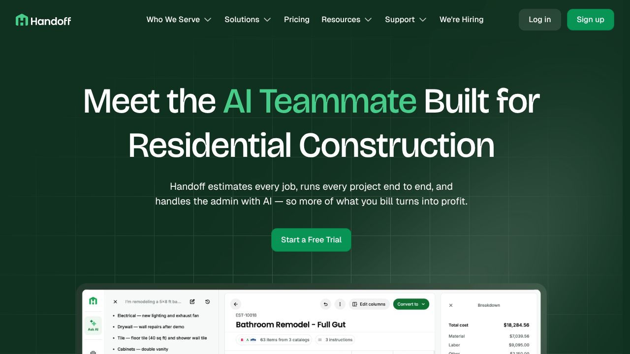 Construction firms spend an average of 15 hours per week managing estimates and proposals manually - time that could be better spent growing their business. While many automation tools exist in the marketing space, Handoff.AI has carved out a unique niche by focusing specifically on the construction industry's workflow challenges.